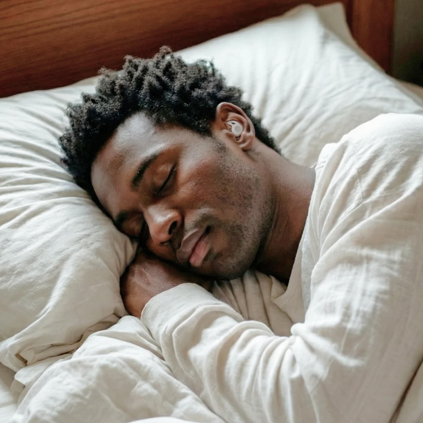 Enjoy music, stories, podcasts, or white noise, with up to −28 dB passive noise reduction to soften everyday night sounds.